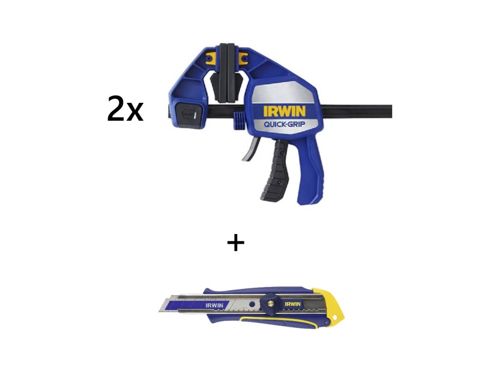 Ke 2 ks svěrek získáte jako dárek Irwin profesionální odlamovací nůž 18mm