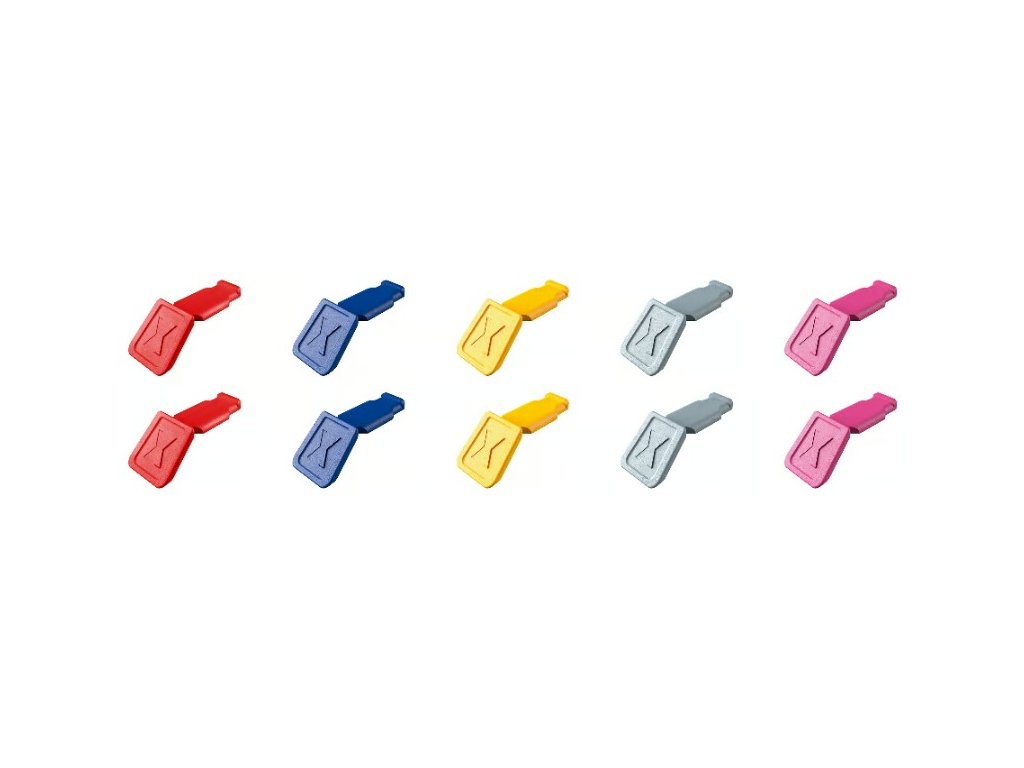 2 klipy v 5 barvách: modrá, šedá, červená, žlutá, magenta.