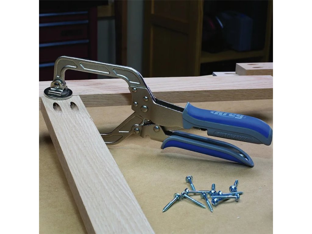 Klešťová svěrka Automaxx je ideální pro práci s Kreg produkty, montáže i pro obyčejné upínání. Svěrka má velkou upínací plochu, která rovnoměrně rozděluje upínací sílu, aniž by poničila i ty nejjemnější povrchy.