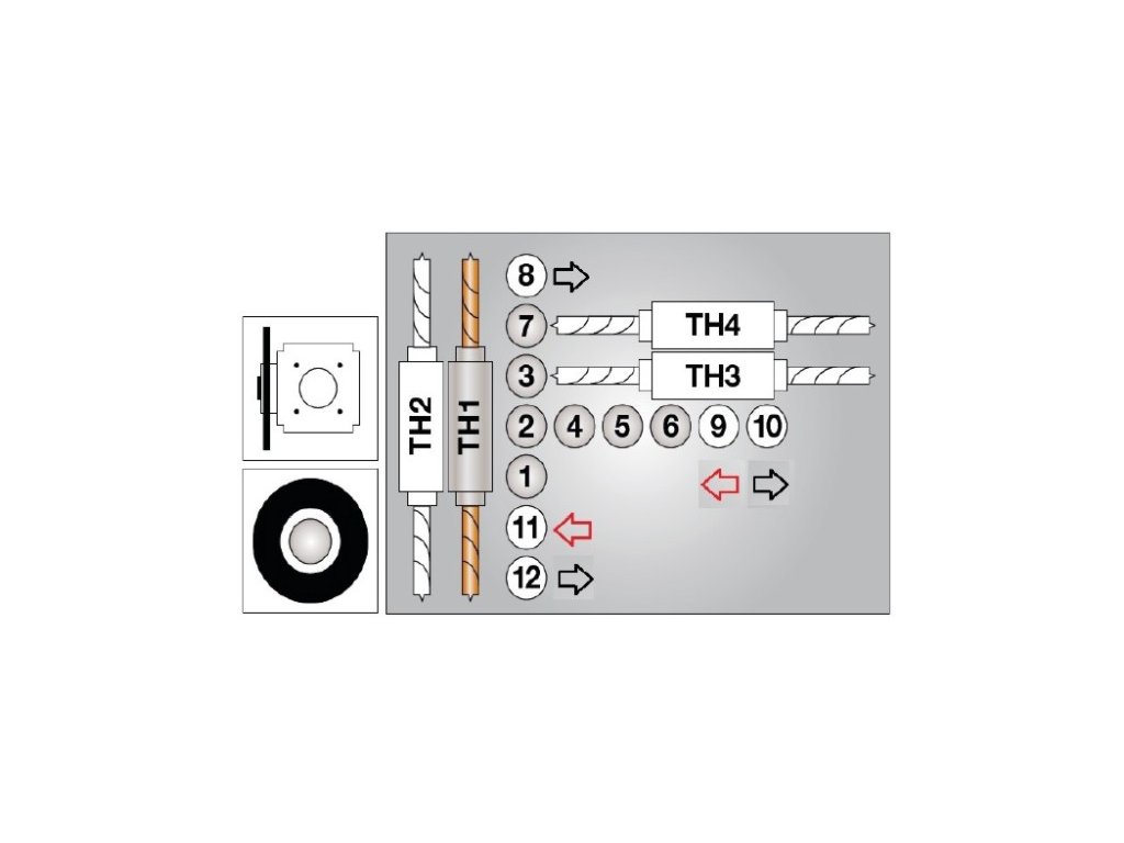 - dvojice 1+1 horizontálních vřeten TH4 (vrtání do hrany v ose Y)