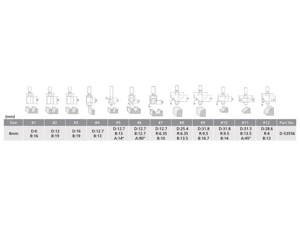 Makita sada fréz S=8 mm v dřevěné krabičce - 12 ks
