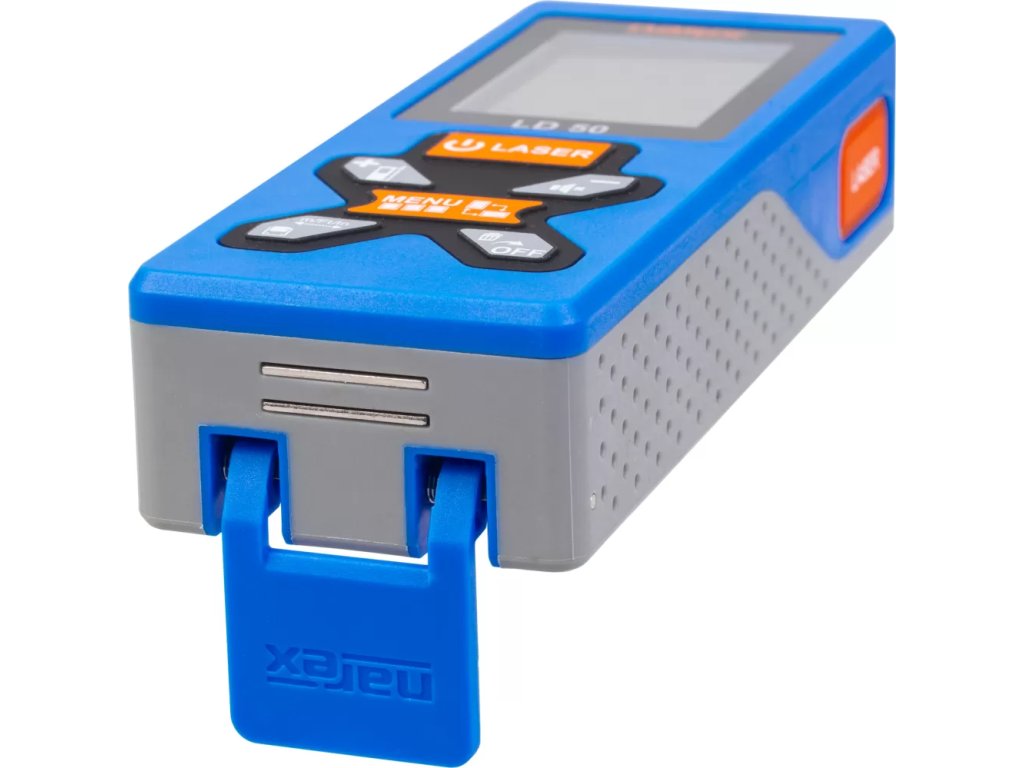 Zabudované silné magnety umožňují vertikální nebo horizintální uchycení dálkoměru k feromagnerickým materiálům, zvyšují tak přesnost měření a zjednodušují celou řadu činností (např. instalatérská a sádrokartonářská činnost).
