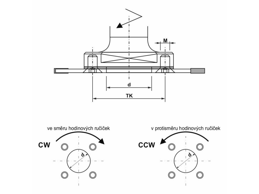 Dodatečně se upravují pomocné upínací otvory a distanční kroužky pro danou upínací hlavu včetně zahloubení a směru otáčení. PŘI OBJEDNÁVCE UVEĎTE V POZNÁMCE ROZMĚRY POMOCNÝCH UPÍNACÍCH OTVORŮ!