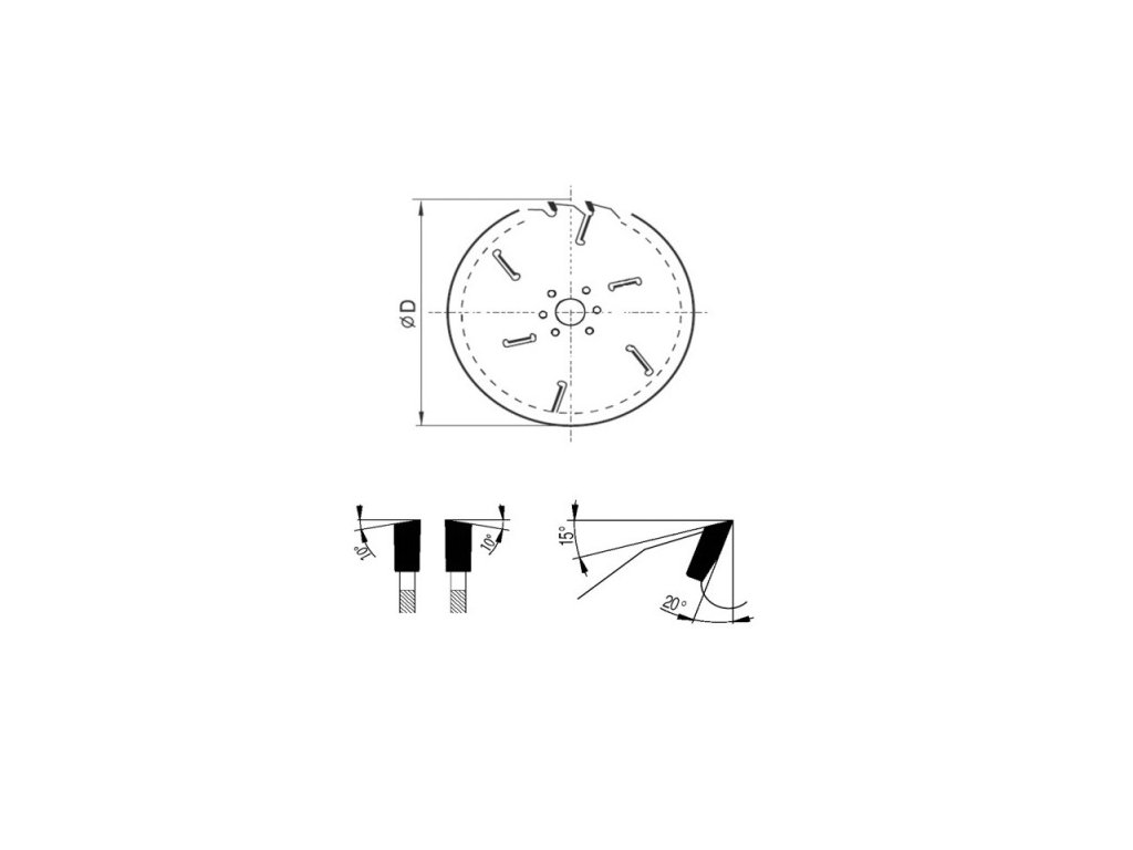 Vyklizovací zuby přesně k přírubě jednotlivých typů strojů eliminují praskání kotoučů při zachování vynášení maximálního množství třísky z řezu.