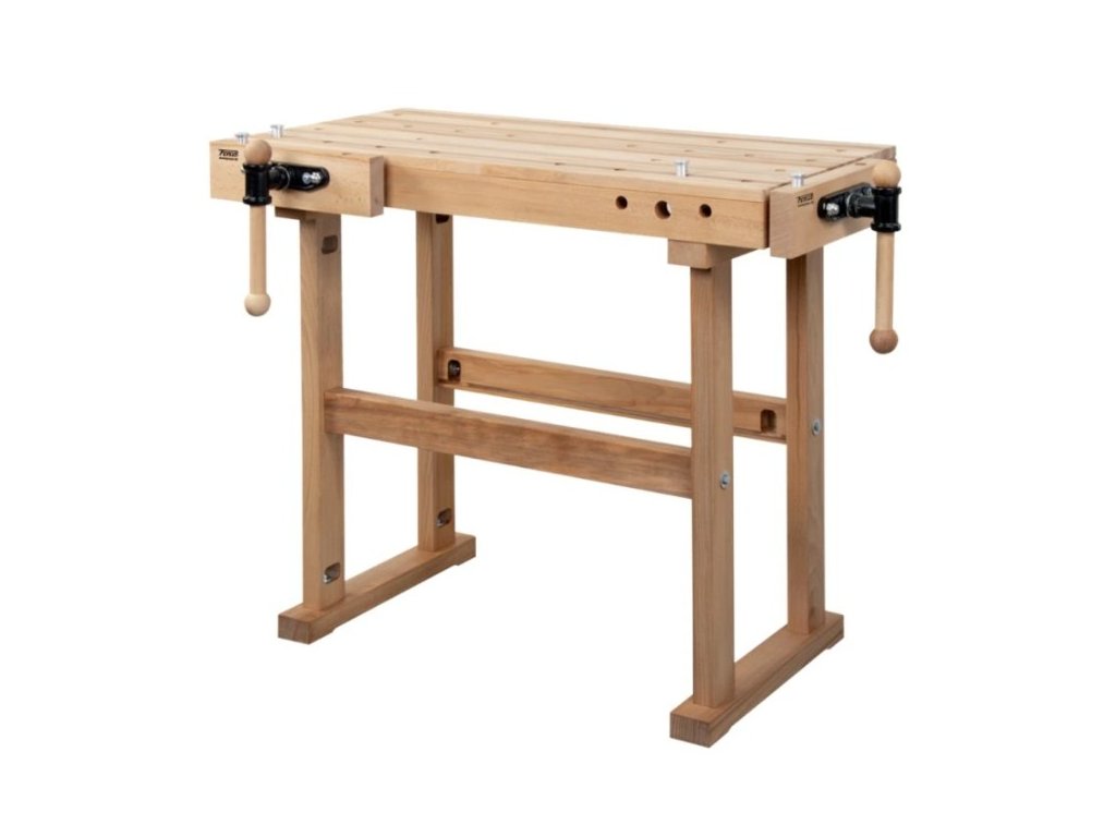 Masivní buková pracovní deska o celkové tloušťce 90 mm (pracovní plocha 20 mm) zaručuje stabilitu.
