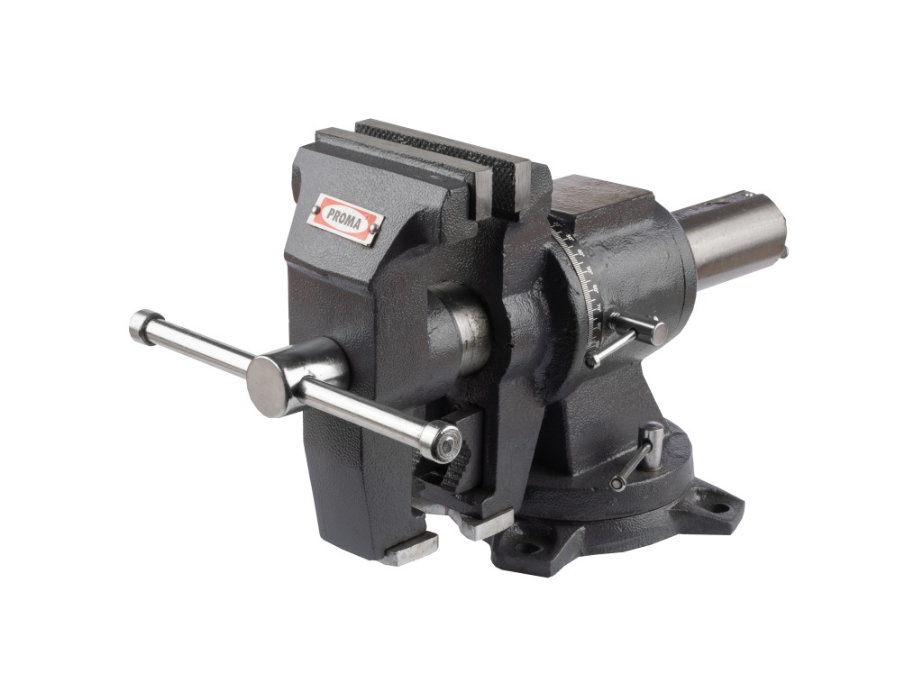 PROMA VS-100 víceúčelový stolní svěrák je vynikajícím nástrojem pro pevné uchycení materiálů v různých úhlech a pozicích včetně druhých čelistí pro uchycení kulatého materiálu. S jeho robustní konstrukcí a širokou škálou možností nastavení je ideálním řešením pro profesionální i domácí dílny.