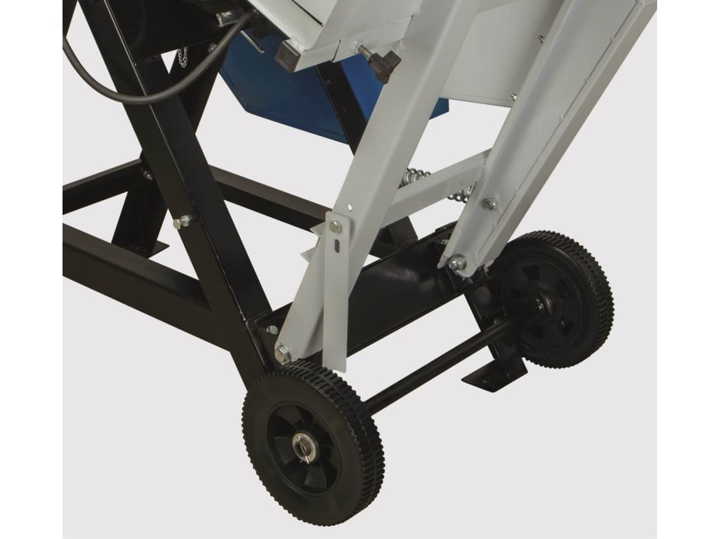 Pila má pevná transportní kola, je kompaktní a nezabere mnoho místa, její konstrukce je však velmi robustní, odolná proti překlopení a částečně vychází z designu profesionálních pil Scheppach. Svařované ocelové profily, ošetřené kvalitním práškovým lakováním, jsou velmi stabilní v krutu a celá pila je dimenzována na dlouhý, bezstarostný provoz.