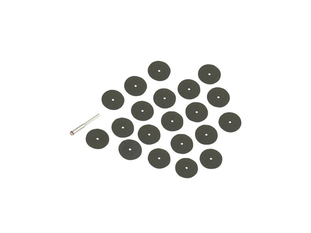 Sada obsahuje 35 ks řezných kotoučů o průměru 22 mm s výměnnou stopkou 3,2 mm.