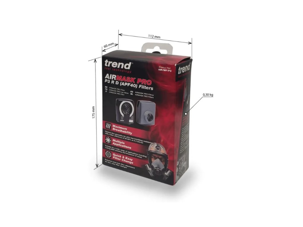 Kombinovaný filtr FFP3 pro použití s Trend Maskou Airmask Pro. Vysoká ochrana před částicemi. Účinnost filtru je 99,99% částic o velikosti 0,3 mikronu. Střední ochrana před výpary, jako jsou těkavé organické sloučeniny/rozpouštědla.