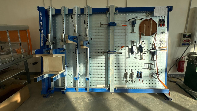 Pre potrebu praktickej výučby dodávame iba preverené a špičkové stroje od renomovaných výrobcov. Nemecká značka Barth Maschinen patrí vo svojej kategórii k špičke a jej rámové lisy sú známe vysokou presnosťou, robustnosťou a dlhou životnosťou. Model RPGL s perforovanou pracovnou doskou ponúka študentom komfortné a bezpečné pracovné prostredie, ktoré zodpovedá štandardom moderných stolárskych dielní.