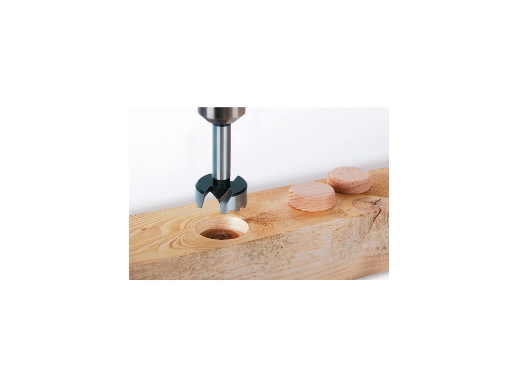 Tento Forstnerův vrták z CV je ideální pro vrtání otvorů na závěsy a vrtání do měkkého dřeva s omezením hloubky. Samořezný středicí hrot zajišťuje přesné bodové vrtání a stabilní vedení rukou. Dva ostré hlavní břity umožňují rychlé vrtání. Speciální tvar břitů zajišťuje snadnější práci a snižuje vytvýření pracovního tepla. Vrták se dodává v různých velikostech a má kruhovou stopku Ø 10 mm, kterou je možno rychle upnout do vrtačkového sklíčidla.