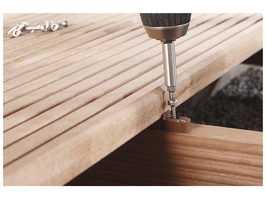 Wolfcraft Rozšiřovací set TERASA – skryté spoje: 100 spojek a 600 šroubů Tx20