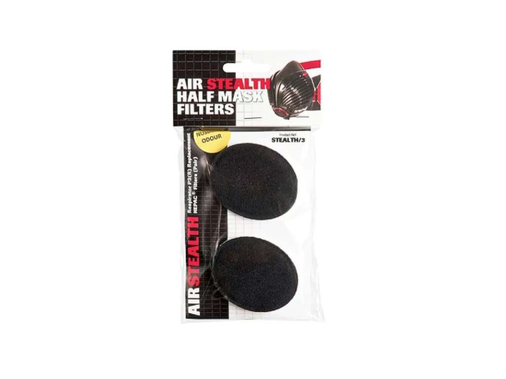 Pár filtrů proti zápachu pro polomasku AIR STEALTH s dvojitým zapouzdřeným filtrem HEPAC (vysoce účinný filtr částic a sloučenin) zajišťuje 99,99% filtraci částic a aerosolů ve vzduchu do velikosti 0,3 mikronu.
