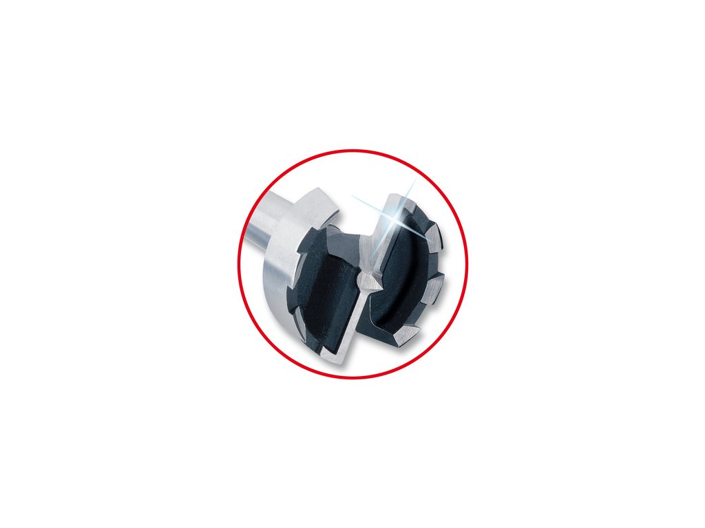 Tento Forstnerův vrták z CV je ideální pro vrtání otvorů na závěsy a vrtání do měkkého dřeva s omezením hloubky. Samořezný středicí hrot zajišťuje přesné bodové vrtání a stabilní vedení rukou. Dva ostré hlavní břity umožňují rychlé vrtání. Speciální tvar břitů zajišťuje snadnější práci a snižuje vytvýření pracovního tepla. Vrták se dodává v různých velikostech a má kruhovou stopku Ø 8 mm, kterou je možno rychle upnout do vrtačkového sklíčidla.Určen především pro materiály: měkké dřevo, dřevotřísková deska, dřevěné trámy, překližka, povrstvené dřevo, plast.